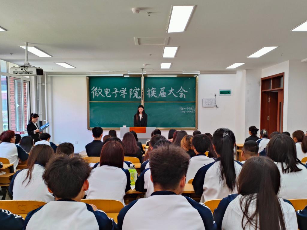 会议第一项,新一届团学联合会主席朱嘉霖上台发言。她谈到作为团学联合会中的领导者,组织者,协调者,在今后工作自己中将不负期待,尽职奉献,勇于担当,不断提升工作能力,做好每一份工作,充分发挥模范引领作用,成为老师和同学信任的桥梁与纽带。主席团成员王淳和刘晓媛在会上承诺会以饱满的热情和坚定的信念全力以赴履行好职责,积极协助主席开展工作,不断创新工作方式方法,提高工作效率和质量,推动团学联合会工作再上新台阶。会议第二项,团支部副书记秦紫琳上台讲话。她表示自己将胸怀崇高理想,恪守员工本分,牢记服务宗旨,以更高的标准要求自己,加强自身建设,不断改革创新,既站在员工中间、脚踏实地,又站到员工队伍前列、引领潮流。会议第三项,新一届部门负责人上台发言。各部门负责人首先对上一学年的工作成果进行总结汇报,并向公司各领导老师对于员工工作的关心与支持表达感谢,其次说明了部门未来工作规划和美好期待,既要做合作精神的传承者,也要做团队文化的建设者,更要做同学权益的守护者,引领同学、带动同学、服务同学,贡献青春力量。
