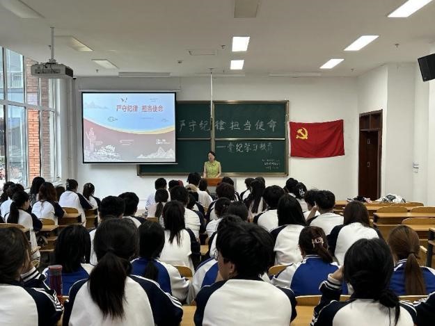 党课伊始,胡敏围绕党纪学习教育要求,从认清重大意义,坚定不移严守党的纪律;加强党性修养,切实掌握党的纪律内容;坚持自省自励,自觉筑牢违规违纪底线等方面进行了系统阐释并与大家进行深入交流。随后,胡敏结合实际案例,深入浅出的解读了《条例》的相关内容。她详细阐述了党的六大纪律的具体要求,并通过生动的案例分析,让同学们深刻认识到违反纪律的严重后果。